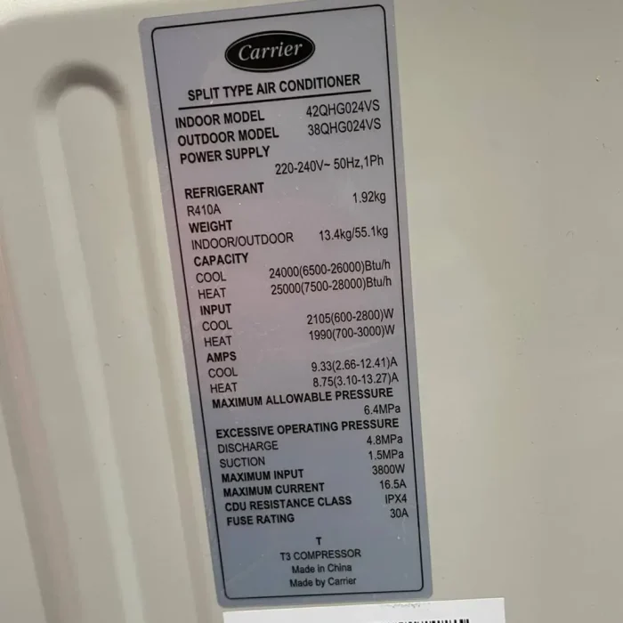 اسپلیت و کولر گازی کریر مدل QHG024VS