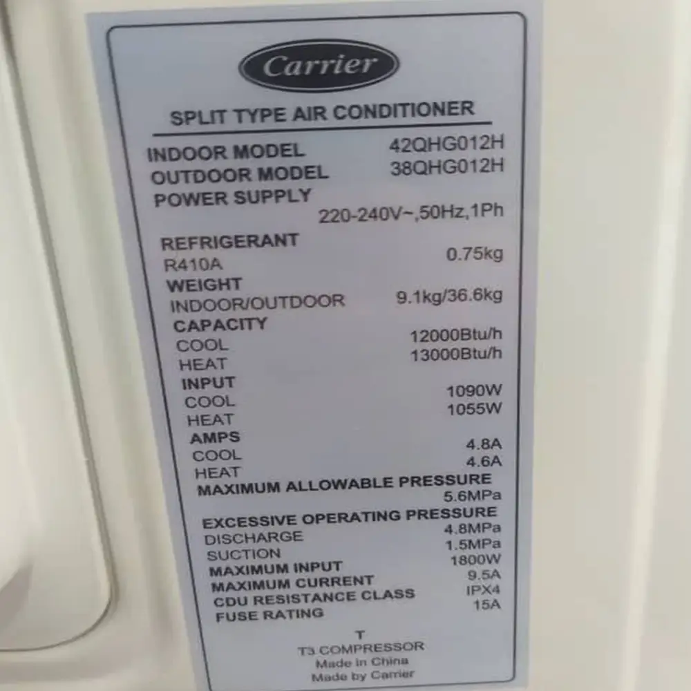 کولر گازی کریر ۱۲۰۰۰ معمولی