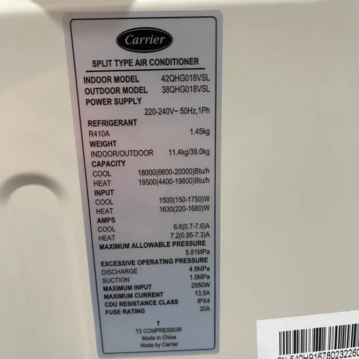 کولرگازی کریر ۱۸۰۰۰ مدل QHG018HN