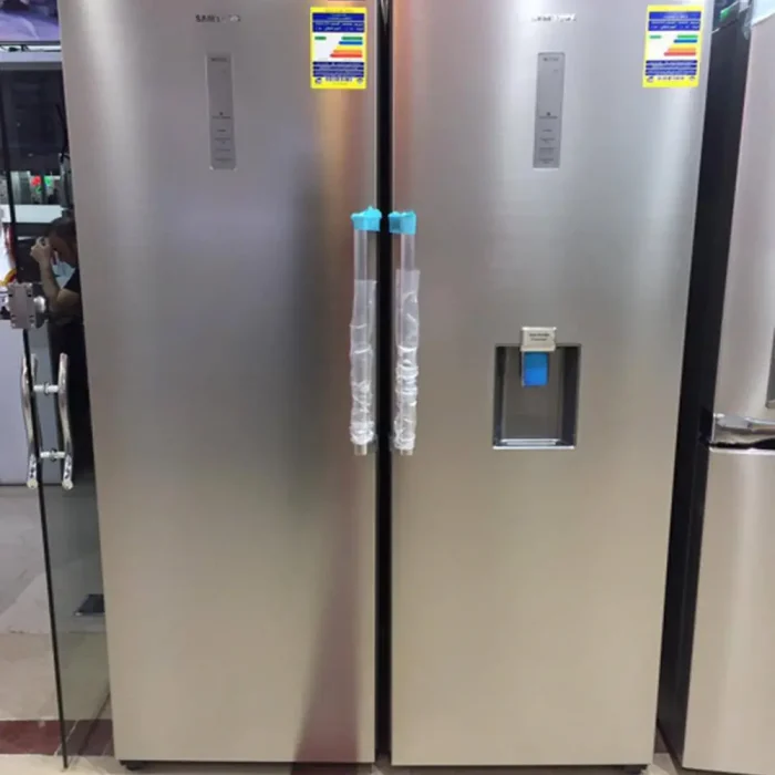 اکنون به معرفی یکی از یخچالهای دوقلوی برند سامسونگ با مشخصات RR39RZ32 میپردازیم این یخچال دوقلو یکی از خوش ساختترین مدلهای شرکت سامسونگ است که دیزاینی بسیار جذاب و دیدنی دارد و بسیار مناسب خانوادههای پرجمعیت و بسیار پرمصرف است. یخچال RR39RZ32 با ظرفیت 40 فوت میتواند مواد غذایی بسیار فراوان را نگهداری کند و دسترسی کاربران را راحت کرده است. با توجه به آنکه مصرف انرژی بسیار پایینی دارد و از بهترین کمپرسور اینورتر بهرهمند میباشد توانسته رتبه انرژی آن +A باشد. یخچال فریزر دوقلوی سامسونگ از دو بخش یخچال و فریزر میباشد که به صورت مجزا کنار یکدیگر قرار داده میشوند لذا مخاطبان میتوانند دورتر از هم آنها را نیز قرار دهند ولی معمولاً کنار یکدیگر قرار میدهند. این مدل یخچال فریزر دوقلو RR39RZ32 دارای قابلیتهای بسیار کاربردی است که میتوان به انجماد سریع فریزر، سیستم جریان هوای چندگانه داخل یخچال و فریزر به همراه فیلتر بهداشتی، جریان هوای خنک کنندگی و تمام اینها اشاره نمود که در ادامه به صورت کامل توضیح داده میشوند. با خرید یخچال دوقلوی سامسونگ از قابلیتهای هوشمند نیز بهرهمند خواهید شد چون به گوشی هوشمند اتصال پیدا میکند و پیشرفتهتر و راحتتر در اختیار مخاطبان قرار میگیرد. طراحی داخلی یخچال و فریزر سامسونگ دوقلو با دیزاین پیشرفته و بسیار منظمی انجام شده است، به صورتی که مرتب میتوان هر نوع ماده غذایی را طبق سلیقه خودتان بچینید و فضای زیادی در اختیارتان قرار دارد. شرکت سامسونگ با در نظر گرفتن سلیقههای متفاوت در دو رنگ سفید و نقرهای مدل یخچال RR39RZ32 را طراحی کرده است که برای کاربران بسیار مفید واقع شده است.