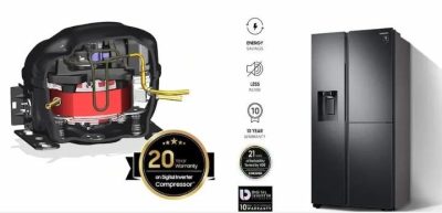 کمپرسور اینورتر دیجیتالی در یخچال ساید با ساید سامسونگ مدل RH65 یکی از قدرتمند است که وظیفه بسیار عالی دارد و جزء مهمترین و بهترین فناوری موجود در یخچال فریزر سامسونگ استور توانایی بسیار بالایی دارد و عملکرد یخچال را تحت کنترل خود قرار میدهد به صورتی که در مصرف انرژی صرفهجویی میکند. بنابراین کاهش مصرف برق را منجر میشود و باعث افزایش دوام ماندگاری یخچال خواهد شد. این یخچال بسیار دیر دچار خرابی میشود به همین دلیل کاربران با خیال راحت میتوانند نسبت به خرید چنین محصولی اقدام کنند لذا علاوه بر موارد ذکر شده دارای گارانتی ۱۰ ساله است. از طرفی چون در طراحی کمترین قطعات به کار رفته است، بنابراین صدایی که توسط یخچال ایجاد میشود بسیار ناچیز است و مخاطبی که نزدیک یخچال حتی نشسته باشد متوجه صدای آن نخواهد بود، در ساکتترین حالت شب نیز یخچال در حالت بیصدا قرار میگیرد و برای کاربران این مورد بسیار حائز اهمیت است.